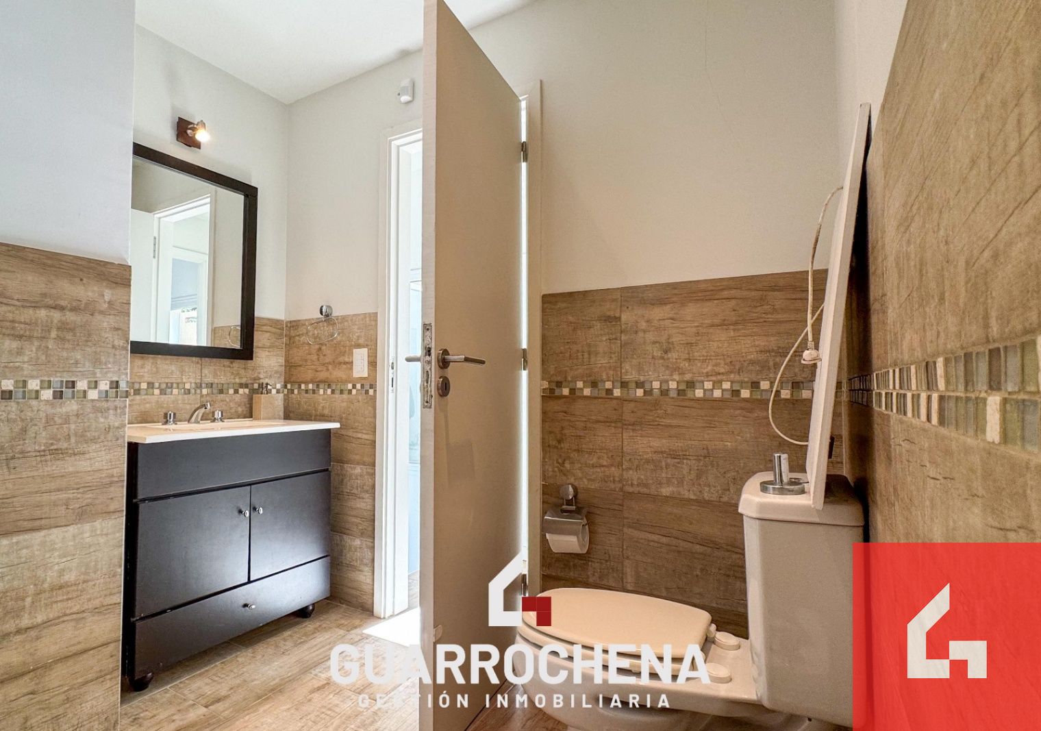 La propiedad está diseñada para disfrutar del entorno natural, con un hermoso jardín y áreas verdes que destacan la forestación del lugar. Además, cuenta con cochera semicubierta, calefacción, conexión para lavarropas, parrilla, y un acogedor living-comedor. Los servicios como Internet, cable TV y WiFi están disponibles, garantizando un estilo de vida moderno y conectado.